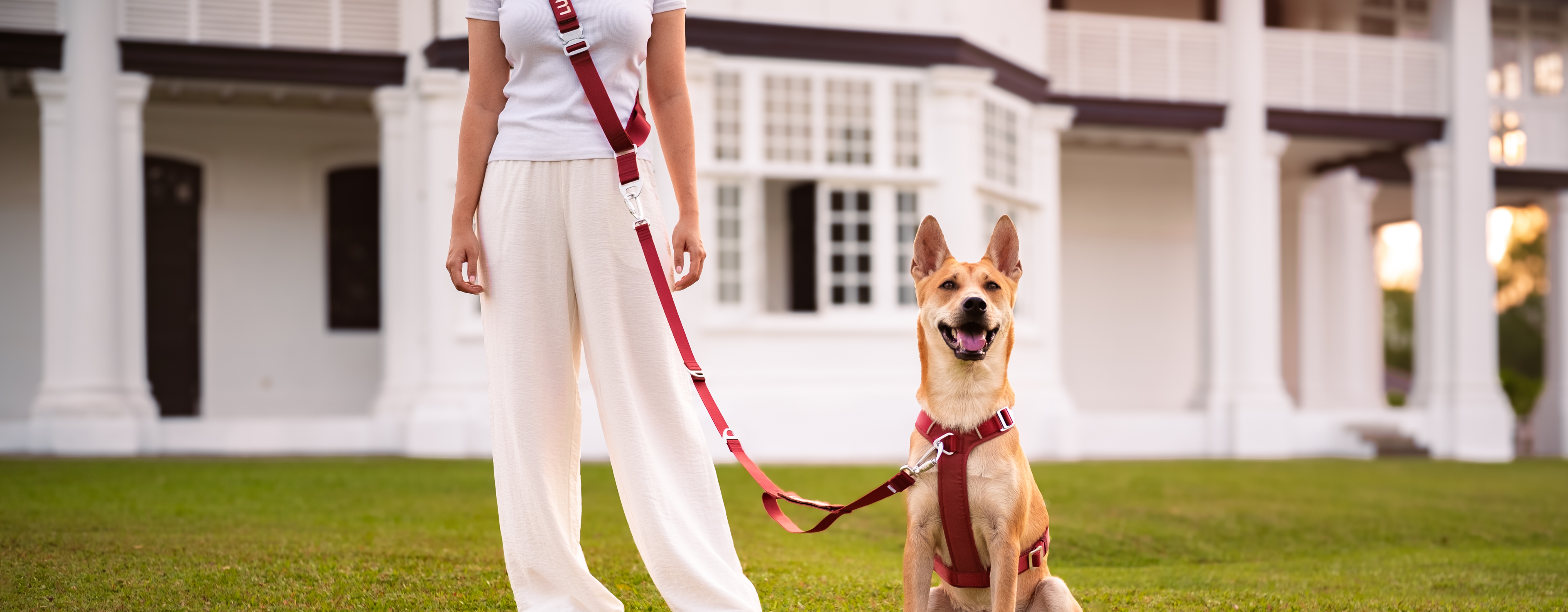 We're really impressed with the Lune Wuf leash for our Singapore Special, Mishmish. At 20kg, she can be a strong puller, and the body leash has been a total game-changer, making our walks so much more comfortable and hands-free.